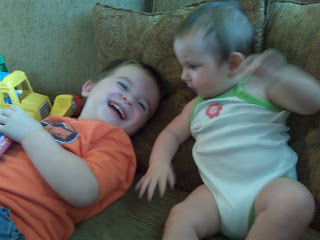 In Warren news, he played with a tricycle at the store a few weeks ago that he really wanted. I planned on waiting till his birthday to get it, but found one at a consignment store today and couldn't wait. When I walked in the door with it, he came running over in excitement and went to jump on it. But stopped, ran over to me, gave me a huge hug, then ran back. It was the sweetest "thank you" I've ever received!